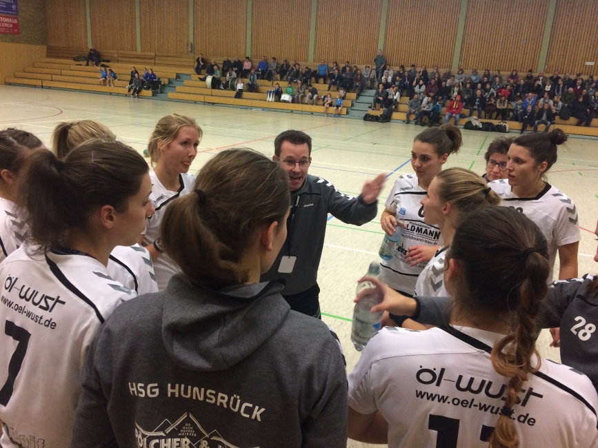 In den Folgeminuten kämpfte sich die HSG mehr und mehr ins Spiel und verkürzte auf 12:8 und 14:10 (26. Minute). 3 Pass; Fangfehler in Folge, der der Gastgeber gekonnt nutzte, verhinderten jedoch ein besseres Halbzeitergebnis und somit wurde beim Stande von 17:10 die Seiten gewechselt. Das „Auf und Ab der Leistung der HSG Hunsrück“ ging in der zweiten Halbzeit weiter und der Sieg des Tabellenführers geriet niemals in Gefahr. Unter der Leitung der guten Schiedsrichter Bertram/Dreyer siegte der Gastgeber folgerichtig mit 29:24 und bleibt zu Hause ungeschlagen.