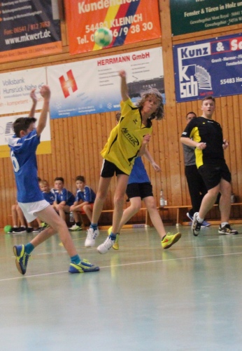 Einen Blitzstart legte die JSG Hunsrück in eigener Halle hin. Von Bginn an agierte die JSG taktisch, kämpferisch und spielerisch besser als der Gast aus Kastellaun/Simmern. Folgerichtig führte die D-Jugend Dank der offensiven Abwehrarbeit bereits zur Halbzeit mit 18:6 Toren. Allerdings: Auch das Team von Gästetrainer D. Fellenzer hat sich in vielen Belangen gegenüber dem Hinspiel verbessert.