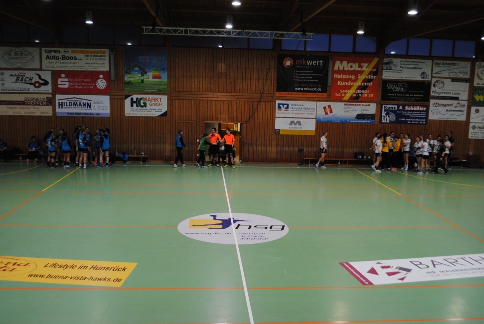 Die Gäste mussten kurzfristig auf Carla Schurich verzichten. „Es war ein wirklich körperlich geführtes Derby mit wechselnden Führungen im ersten Spielabschnitt. Die spielerischen Vorteile im ersten Spielabschnitt habe ich auf unserer Seite gesehen. Demzufolge führten wir auch ständig mit einem bis zwei Treffern, legten sogar auf 12:15 vor und dann kam die für mich die spielentscheidende Situation. Die Unparteiischen griffen ins Geschehen ein und schickten die bis dahin stärkste Spielerin auf dem Platz Gwenny Barthen mit der dritten Zeitstrafe und damit roter Karte vom Platz. Dazu zog sich Jennifer Simonis vermutlich einen Nasenbeinbruch zu und wir konnten sie erst in den Schlussminuten wiedereinsetzen“, sagte Gästetrainer Thomas Feilen.