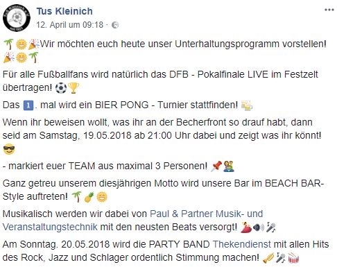 Für alle Fußballfans wird natürlich das DFB - Pokalfinale LIVE im Festzelt übertragen!