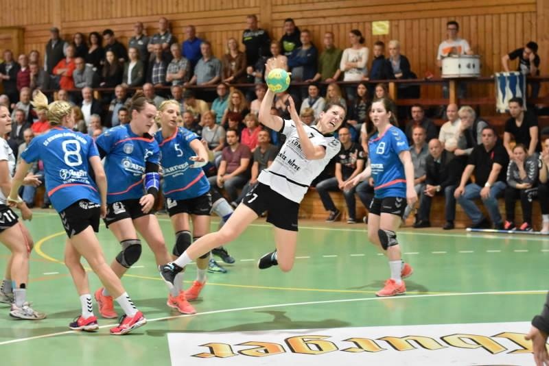 In der stimmungsgeladenen und ausverkauften Hirtenfeldhalle, darunter mehr als 50 Fans der Gäste, entwickelte sich unter der sicheren Leitung der Schiedsrichter Kigowsky/Strüder eine temporeiche Partie, welche nach ausgeglichenem Start (3:3) ab der 8. Minute durch den Gastgeber bestimmt wurde. Bedingt durch eine sehr gut eingestellte und arbeitende Abwehrformation konnte die HSG auf 8:5 davon ziehen. Der Gästetrainer reagierte und nahm die Auszeit. Die Gäste aus der Pfalz zeigten nun Ihr Können, verkürzten nun auf 10:9 und zwangen den HSG Trainer die grüne Karte auf den Zeitnehmertisch zu legen. Er erinnerte an das Rückzugsverhalten, die Vorgaben in der Abwehr und wechselte Torfrau Sophie Born ein. Eben diese brachte die SG in den letzten Minuten bis zum Seitenwechsel zur Verzweiflung und der Aufsteiger konnte auf 15:10 davon ziehen.